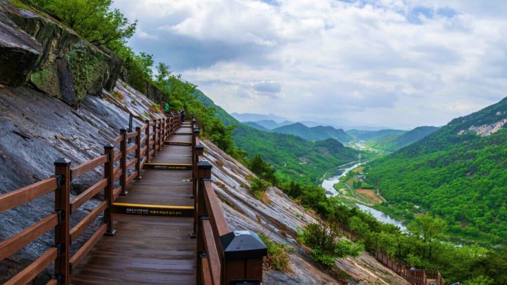 길을 따라 걷는 동안 눈에 들어오는 풍경과 발아래 펼쳐지는 강의 흐름은 지형과 어우러져 특별한 인상을 남긴다.